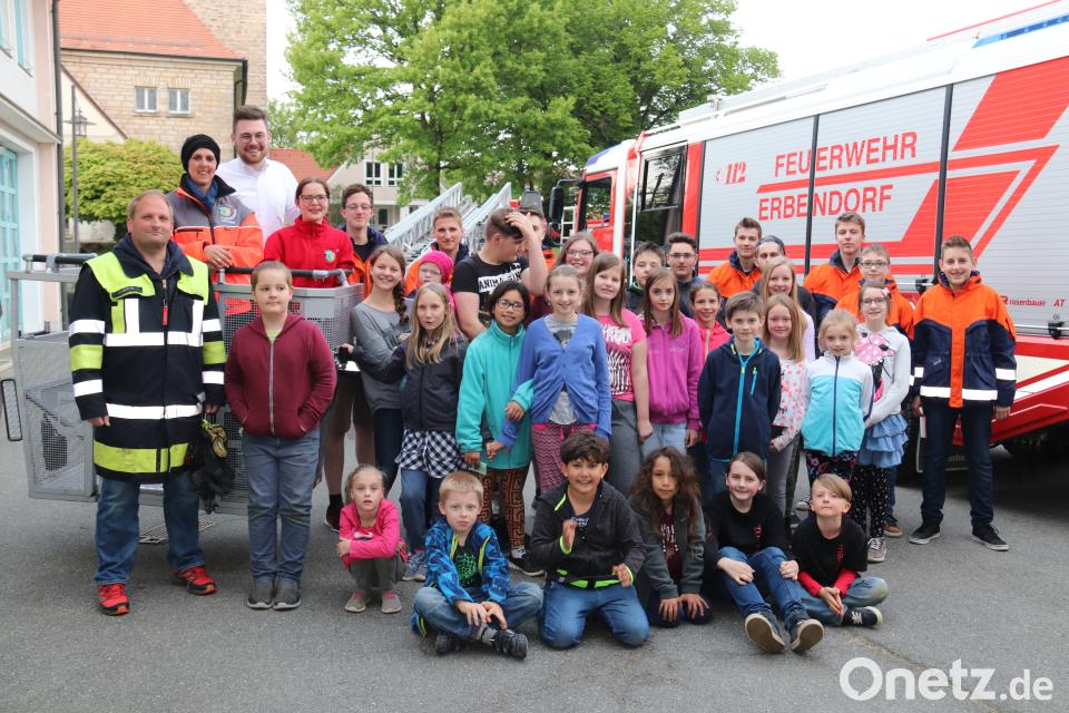So sollen die Kinder spielerisch an das Thema Feuerwehr herangeführt werden. „Sollte das eine oder andere Kind dann Feuer gefangen haben, kann es ab dem 12. Lebensjahr der Jugendfeuerwehr beitreten“, so Schmidt. Die erste „Feuerwehrbesichtigung“ hat das Jugendrotkreuz mit den Kindern jetzt bei der Feuerwehr gemacht. Sie erhielten Einblicke in die Fahrzeugflotte und die technischen Geräte. Die Mitglieder der Jugendfeuerwehr um Jugendwart Roland Kaiser erklärten alles kindgerecht und beantworteten viele Fragen. Natürlich gehörten auch Drehleiterfahrten zum Programm.