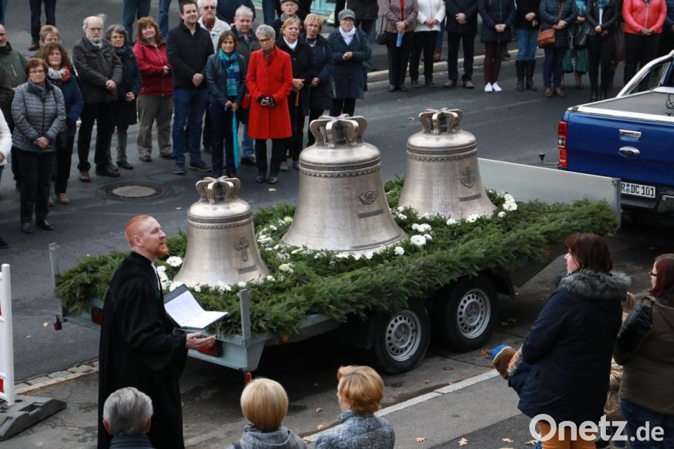 „Seit zehn Jahren arbeitet die Kirchengemeinde auf neue Glocken hin“, stellte Pfarrer Zeh im Gottesdienst fest. Denn die Stahlklangglocken aus dem Jahr 1923 korrodierten im Laufe der Zeit und der der vier Glocken mussten aus Sicherheitsgründen abgestellt werden. Viele große und kleine Spenden seien in dieser Zeit für ein neues Geläut eingegangen. „Allen Spendern und Unterstützern gilt ein großes Dankeschön.“