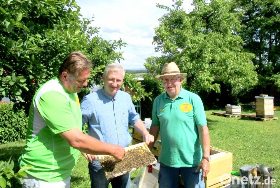 Einen Besuch auf dem Lehrbienenstand stattete nun zweiter Bürgermeister Johannes Reger ab. „Da nun auch unser langgehegter Wunsch nach einem eigenen Lehrbienenstand in Erfüllung gegangen ist, sagen wir unserem zweiten Bürgermeister herzlichen Dank“, betonte Schmidt. „Natürlich sind Gäste und Interessenten, die sich über die Bienenhaltung informieren wollen, am neuen Lehrbienenstand am Barbara-Weg immer herzlich willkommen.“