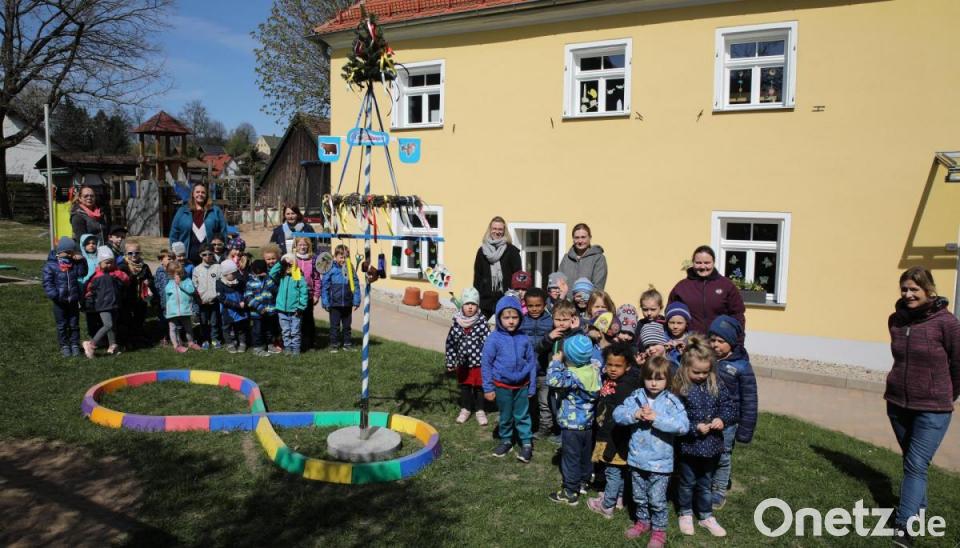 Die Buben und Mädchen des Regenbogenkindergartens griffen eine Tradition auf und stellten ihren eigenen Maibaum mit Blasmusik aus der Konserve auf. In den vergangenen Tagen nutzten die beiden Gruppen des evangelischen Kindergartens Regenbogen die Gelegenheit, sich mit dem Mai und natürlich dem Maibaum zu befassen. Am Freitag stellten die Kinder dann im Garten der Einrichtung ihren Maibaum auf. Bevor es aber so weit war, durfte jedes Kind noch am Nadelbaum sowie am Kranz ein Schleifchen anbringen. Die Stärksten hievten den Baum dann in die Höhe. Im Anschluss gab es in den Gruppenräumen noch eine kleine Maifeier. Übrigens kann die Öffentlichkeit den Maibaum im Eingangsbereich der Einrichtung bewundern.