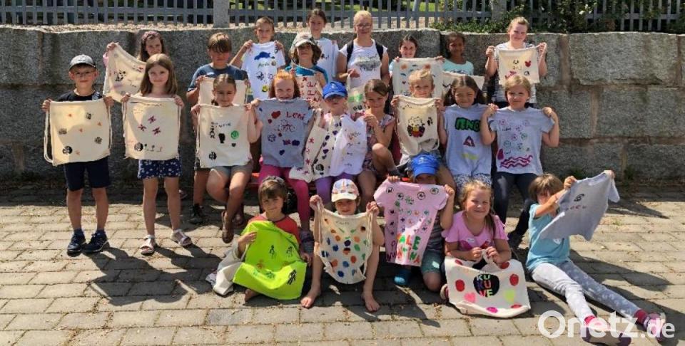 Begeisterung für kreatives Gestalten – das hat der Kunst- und Kulturverein Erbendorf den Kleinsten laut einer Pressemitteilung nähergebracht. 25 Kinder hat ein Team des "KUKUVE" unter der Leitung von Eva Konz und Ulrike Scholz am vergangenen Freitag drei Stunden betreut. Bei strahlendem Sonnenschein und hochsommerlichen Temperaturen fanden sie neben der Erbendorfer Stadthalle ein schattiges Plätzchen. Mit leuchtenden Farben durften T-Shirts, Stofftaschen, Caps und Turnbeutel bedruckt und bemalt werden. Jede Menge kreative Ideen hatten dabei die Kinder selbst, zum Teil hatten sie auch Vorlagen von zu Hause mitgebracht. Die Stempel wurden aus Moosgummi und Pappe hergestellt, aus Radiergummis geschnitzt oder klassisch per Kartoffeldruck genutzt. Unter anderem zauberten die Kinder Pferde, Pusteblumen, Dinos und sämtliche Krabbeltierchen auf den Stoff. Die in den drei Workshop-Stunden kreativ gestalteten Stoffkunstwerke hielten die Kinder ihren Eltern stolz entgegen. Zum Abschluss erhielt jedes Kind ein buntes T-Shirt des "KUKUVE" als Erinnerung an die Aktion. Der "KUKUVE" bedankt sich bei den vielen Helfern und der Stadt Erbendorf, die Bänke und Tische zur Verfügung gestellt hat. Der 2020 neu gegründete Kunst- und Kulturverein Erbendorf beteiligte sich erstmals mit einer Aktion für die Kleinsten am städtischen Ferienprogramm. Für etwas ältere Kinder und Jugendliche wird am Mittwoch, 8. September, ein Selbstverteidigungskurs angeboten. Weitere Infos hierzu auf der Homepage des Vereins.