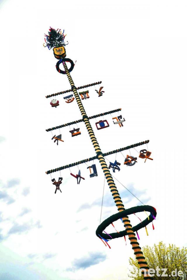 Bereits um 16 Uhr eröffnete die Stadtkapelle musikalisch die Maibaumaufstellung. Die Aktiven der Feuerwehr marschierten unter den Klängen des Spielmannszugs auf. Mit sogenannten Schwalben hievten die Kameraden den geschmückten Maibaum in die Höhe. Erst die letzten Meter brachte Maschinenkraft den Maibaum in seine endgültige Position. Für das Maifest stellte die Feuerwehr Bierbänke und -tische auf und sorgte bestens für das leibliche Wohl. Bei Standkonzerten von Spielmannszug und Stadtkapelle ließ es sich richtig schön feiern. Im Anschluss lud die Feuerwehr noch zu Drehleiterfahrten ein.