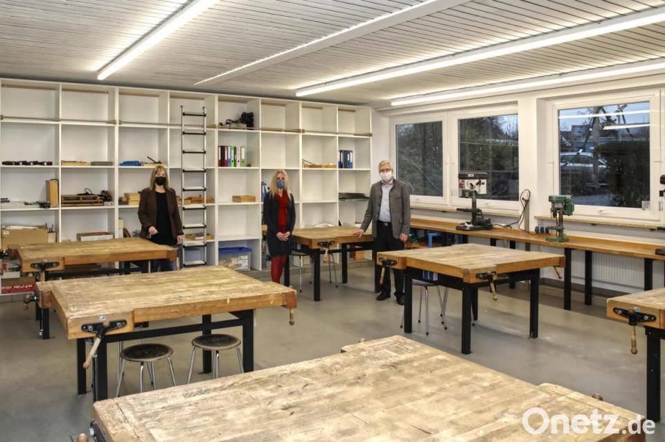 Begeistert zeigten sich vom fertig eingerichteten Werkraum auch Rektorin Sabine Graser sowie Fachlehrerin Veronika Dostler-Oswald. „In der Bildung ist es wichtig, dass sich die Kinder auch mit Werken beschäftigen“, stellte Bürgermeister Reger fest. „Denn vielleicht findet der eine oder andere seine Freude an einem handwerklichen Beruf.