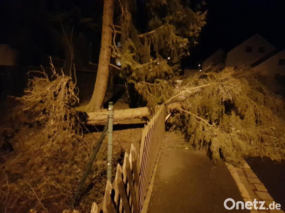 In der Nähe des Friedhofs von Krummennaab stürzte ein Baum in eine Hochspannungsleitung und sorgte für einen längeren Stromausfall. Die Bewohner eines angrenzenden Hauses mussten zwischenzeitlich das Gebäude verlassen, da es sich in unmittelbarer Nähe der betroffenen Hochspannungsleitung befand.