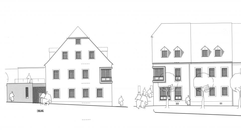 Architekt Krauß ging näher auf die Planungen ein. So müssen die beiden Gebäude von Grund auf saniert und umgebaut werden. Die westlich angebaute ehemalige Werkstatt wird abgebrochen. Der zukünftige Haupteingang führt über die Asylstraße durch einen neuen kleinen Anbau in die Einrichtung. Neben Wohn- und Gruppenräumen für Anwendungen ist auch an eine Kleinküche gedacht worden. Wert legte Krauß darauf, dass der gesamte Bau barrierefrei erschlossen wird. "Neben einem Treppenaufgang wird auch ein Aufzug vom Gewölbekeller bis ins Dachgeschoss integriert." Ausgelegt ist die Tagespflegeeinrichtung auf 15 Personen. Insgesamt stehen 300 Quadratmeter Nutzfläche zur Verfügung. Auf den Freiflächen westlich des Hauses entstehen ein Therapiegarten sowie zwei Kurzzeitparkplätze.