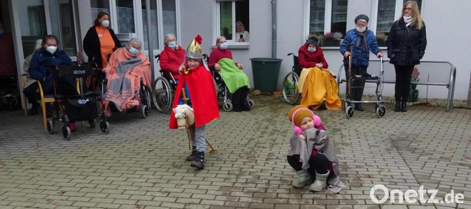 Heuer war es mit Einschränkungen wieder möglich: Die Kinder des Regenbogen-Kindergartens brachten den beiden Seniorenheimen die Geschichte von St. Martin näher – und die Bewohner freuten sich. Die Kinder und Erzieherinnen des evangelischen Kindergartens Regenbogen machten sich auf den Weg zu den Seniorenheimen der Stadt. Mit Jonas als St. Martin und Katharina als Bettler brachten sie den Bewohnern des Caritas-Heimes und des BRK-Altenheims die Geschichte des Heiligen näher.