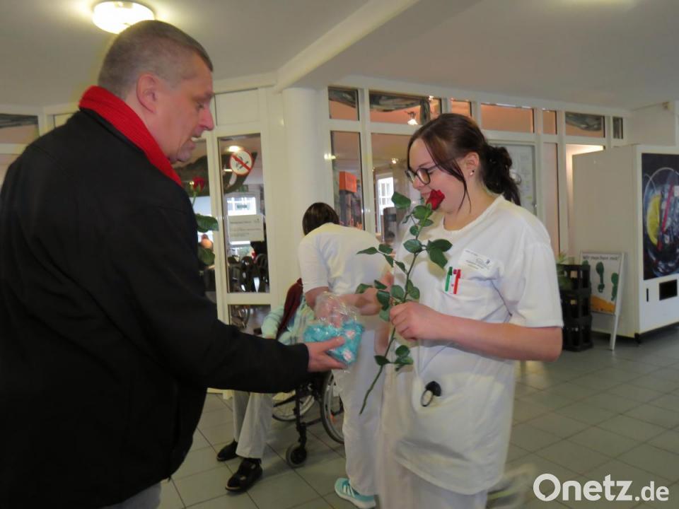 "Ja, wir freuen uns natürlich", sagte Carina Ascherl, die Leiterin der Steinwaldklinik Erbendorf am Freitagnachmittag. Ihre Freude galt dem Besuch einer Delegation des Deutschen Gewerkschaftsbundes (DGB) am Internationalen Frauentag. Eine recht große Abordnung, darunter Ortskartellvorsitzende Christine Trenner aus Erbendorf, beschenkte das Pflegepersonal mit roten Rosen und Bonbons. Ascherl fand diese kleine, nette Geste deshalb groß, weil mit dem Symbol der roten Rose die wichtige Stellung der Frauen in der Gesellschaft öffentlich anerkannt werde. "Bei uns im Haus gibt es sowieso keine Unterschiede", betonte sie.