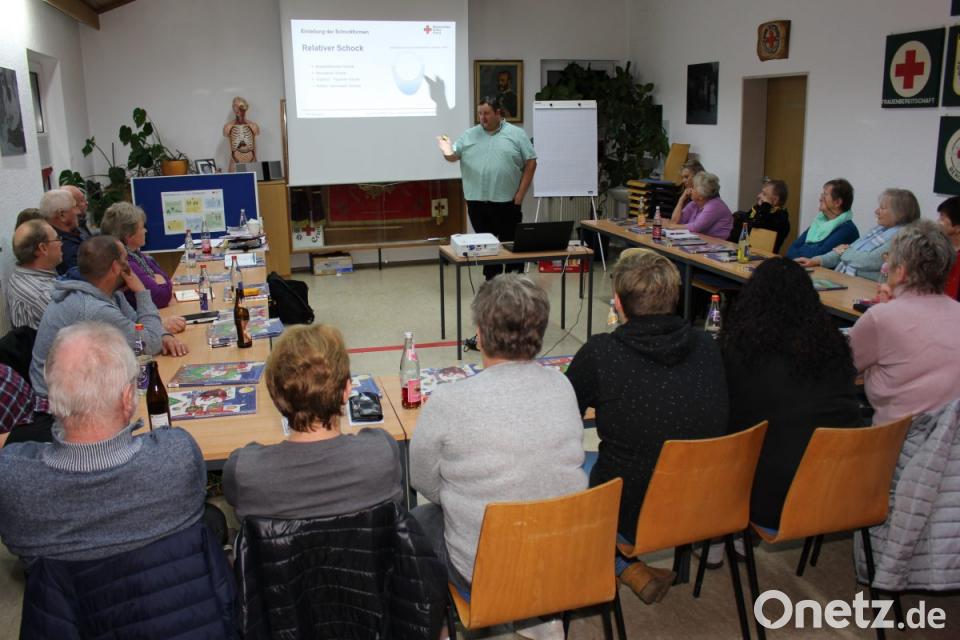 Thema der Monatsversammlung im Rot-Kreuz-Haus war „Der Schock.“ Helmut Zeitler, Praxisanleiter für Notfallsanitäter und Fachdienstleiter Sanitätsdienst beim BRK-Kreisverband, brachte den Teilnehmer Gründe für einen Schockzustand und Abhilfen näher.