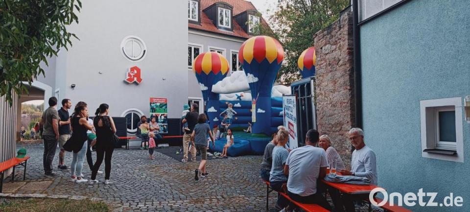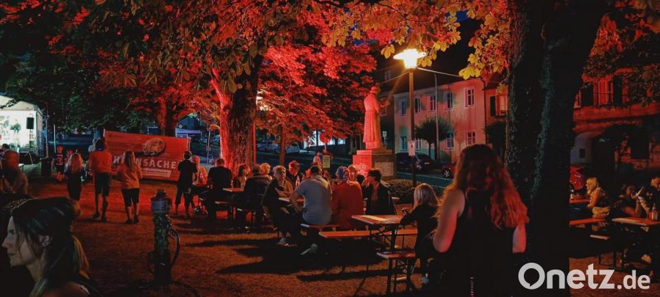Schon am Abend füllte sich der Untere Markt vor der Bühne. Zahlreiche Erbendorfer strömten in die Innenstadt, um zur Musik der "Südwind Buam" mit der OEH Erbendorf zu feiern. Nach mehreren Zugaben endete die Partymusik erst kurz vor Mitternacht auf dem in der Zwischenzeit in rotem Licht gehüllten Festgelände. "Viele Besucher fanden das Ambiente sehr gelungen", freut sich Fabian Keppler-Stobrawe, Leiter der OEH. Besonders der Innenhof des Ärztehauses stach hier heraus. Die alte Kastanie wurde mit einem roten Strahler in Szene gesetzt, die Gebäude entsprechend mit Licht geflutet. Viele Kinder nahmen die Hüpfburg begeistert an. Mit Beginn der Dämmerung verteilten die Ersthelfer noch Hunderte Knicklichter als Leuchtarmbänder an die Kinder.