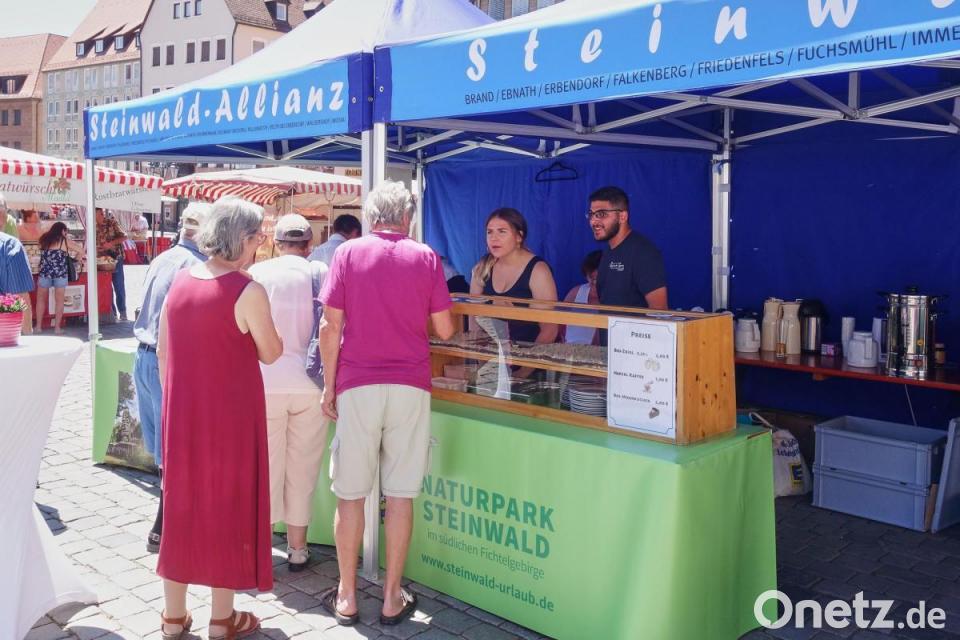 Beim zehnten Mal brannten die Organisatoren ein regelrechtes Feuerwerk an Attraktionen ab. Die Besucher wurden mit Spezialitäten wie dem neuen Bio-Beef-Bacon-Rinderburger der Erzeugergemeinschaft "Öko-Rinder aus dem Steinwald" und - passend zum Start der Öko-Modellregion Stiftland - mit Bio-Dinkel-Liwanzen verwöhnt. Dazu gab es Bio-Zoigl, feine Liköre aus dem Steinwald, Kuchen aus Friedenfelser Bio-Mohn, Karpfenpastete und Waldsassener Lebkuchen. Alleinunterhalter Franz Becker, die Blaskapelle Ernestgrün, die Stadtkapelle Kemnath, der Spielmannszug aus Erbendorf und die Großkonreuther Alphornbläser heizten bei heißen Temperaturen auf dem Hauptmarkt die Stimmung an. Das lockte auch viele Touristengruppen aus Amerika und Asien an.