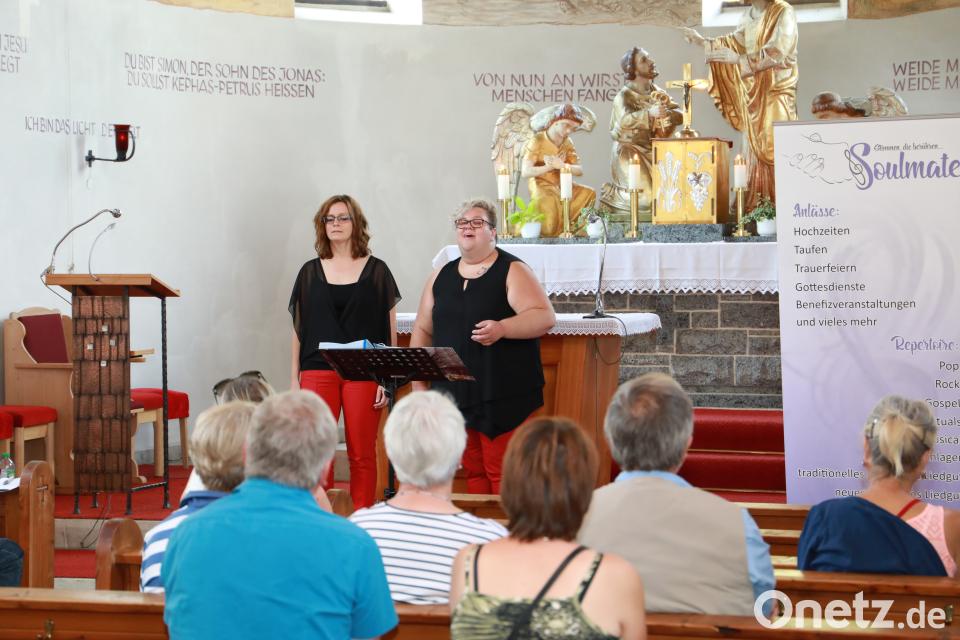 Hauptakteur in diesen rund 90 Minuten war das Duo „Soulmate“ mit den Sängerinnen Bettina Mildner und Stephanie Gröger. Ihrem Motto „Stimmen, die berühren“ machten sie mit ihrem Repertoire alle Ehre. Souliger Stimmen bei zahlreichen Gospels, aber auch zarter Gesang bei geistlichen Liedern, gaben der Benefizveranstaltung eine besondere Note. Schon der erste Titel mit „Chapel of Love“ riss das Publikum mit. Unter anderem waren auch „Amazing Grace“ und Reinhard Fendrichs „Weil´st a Herz hast wia a Bergwerk“ zu hören.
