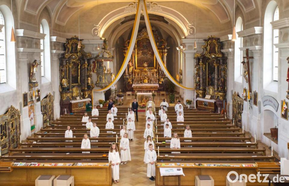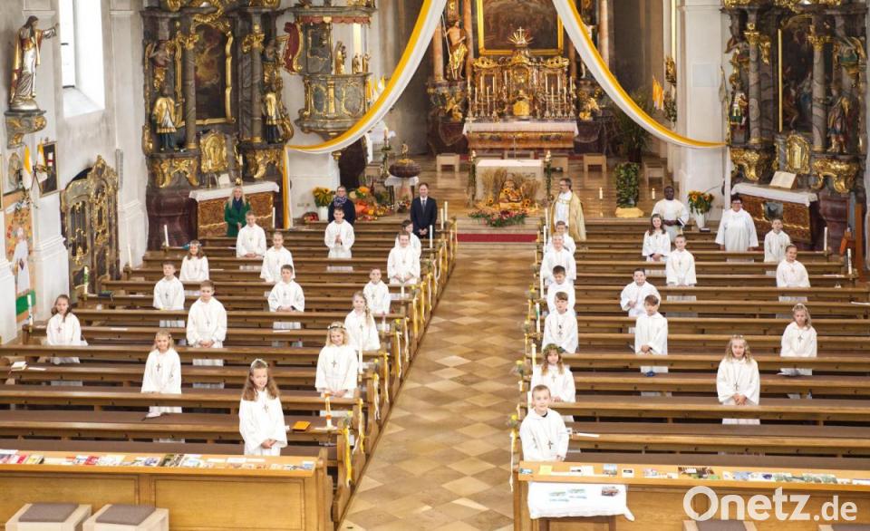 Unter Glockengeläut zogen die Kinder vom katholischen Pfarrhof aus in die Pfarrkirche Mariä-Himmelfahrt ein. Dort begrüßte Pfarrer Martin Besold die Kommunionkinder mit ihren Eltern und Familien. Aufgrund von Corona heuer ganz anders. Denn es fanden für die insgesamt 29 Mädchen und Buben zwei Gottesdienste zur Erstkommunion statt, die unter dem Motto "Jesus, erzähl uns von Gott" standen.