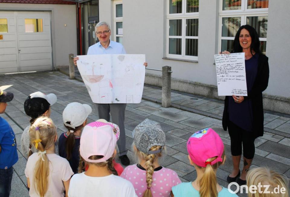 Ihre zu Papier gebrachten Ideen übergaben die Kleinen persönlich an Bürgermeister Reger, der sich über ihr Interesse und ihre Kreativität freute. "Wir werden nicht alle eure Ideen auf einem Spielplatz unterbringen können", meinte der Rathauschef. "Aber wir haben ja viele Spielplätze, und da machen neue Spielgeräte Sinn." Über diese Aussage freuten sich die Kindergartenkinder und dankten Reger.