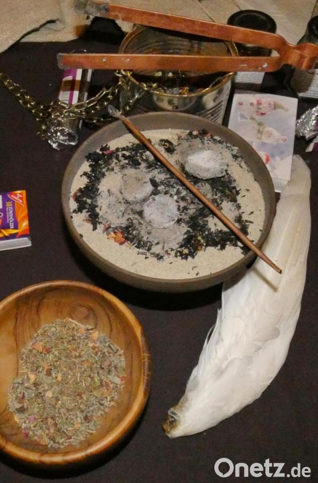 Gegen Traurigkeit, Depressionen und Liebeskummer könne man auch Johanniskraut räuchern, erläuterte Regina Herrmann. Schutz-, Segens- und Reinigungs-Räucherungen seien unter anderem mit Beifuß, Fichte, Holunder, Quendel beziehungsweise Thymian, Wacholder oder Ysop möglich. Elektrosmog oder hohe elektromagnetische Spannung, etwa in Computerräumen, könne Johanniskraut oder Königskerze ausgleichen. Um diplomatische Fähigkeiten zu fördern und Gerechtigkeit zu bewirken, empfahl die Kräuterführerin beispielsweise Eisenkraut.