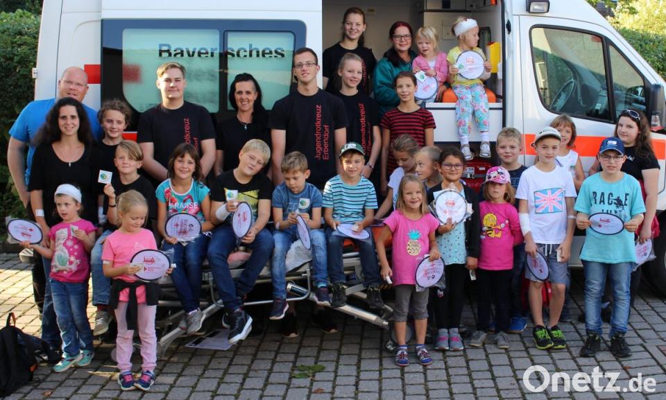 Unterwegs waren die jungen Teilnehmer in vier Gruppen, jeweils mit den Gruppenleitern. Den Abschluss des Parcours bildete die Besichtigung des Rettungswagens. „Die Kinder waren sehr interessiert, voll dabei uns haben alle Übungen sehr gut absolviert“, stellte abschließend BRK-Bereitschaftsleiter und Jugendrotkreuzleiter Sven Lehner fest. „Natürlich machte es allen auch ordentlich Spaß.“