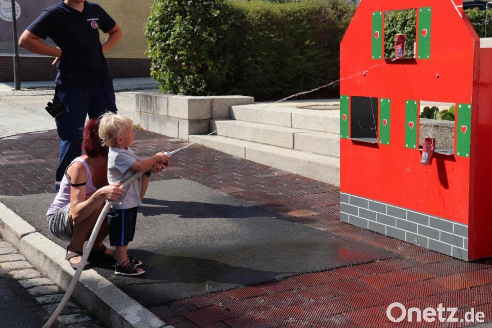 Besonders angesprochen werden sollten an diesem Aktionstag die Jugendlichen. Das Programm war deshalb in das Ferienprogramm der Stadt eingebettet. Wer sich für die Feuerwehr interessierte, der konnte schon mal das Schlauchrollen und das Leinenwerfen üben und mit einer kleinen Handspritze ein Ziel an einem kleinen Häuschen anvisieren.