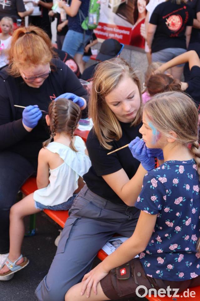 "Prüfen - rufen - drücken." Unter diesem Motto zeigte die BRK-Bereitschaft Reanimierungsmöglichkeiten an einem Dummy auf. Den kleineren Gästen demonstrierte das Jugendrotkreuz, wie Verbände richtig angelegt werden und wie ein Notruf abgesetzt werden kann. Natürlich gab es auch das beliebte Kinderschminken.