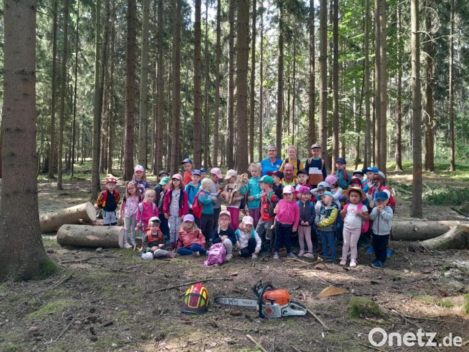 Einen spannenden Vormittag erlebten die Kinder des evangelischen Kindergartens Erbendorf: Sie sahen Forstunternehmer Thomas Müller aus Krummennaab bei seiner Arbeit im Wald über die Schulter, wie die Einrichtung in einer Mitteilung schreibt. Demnach erklärten Försterin Annette Schödel und Thomas Müller den Kindern in dem Waldstück bei Atzmannsberg ihre Arbeit und ihre Aufgaben, bevor dann das große Spektakel begann: Kinder und Erzieherinnen mussten sich mit der Försterin hinter eine Absperrung begeben, um mit ausreichendem Sicherheitsabstand beobachten zu können, wie der Forstarbeiter einen 32 Meter hohen Käferbaum fällte. Nach dem Schneiden und wiederholten Überprüfen der Fallkerbe ertönte der obligatorische Warnruf „Baum fällt“ und schon krachte der Baum in die gewünschte Richtung, heißt es in der Mitteilung. Den Aufschlag auf den Boden konnten die Kinder demnach unter ihren Füßen spüren.