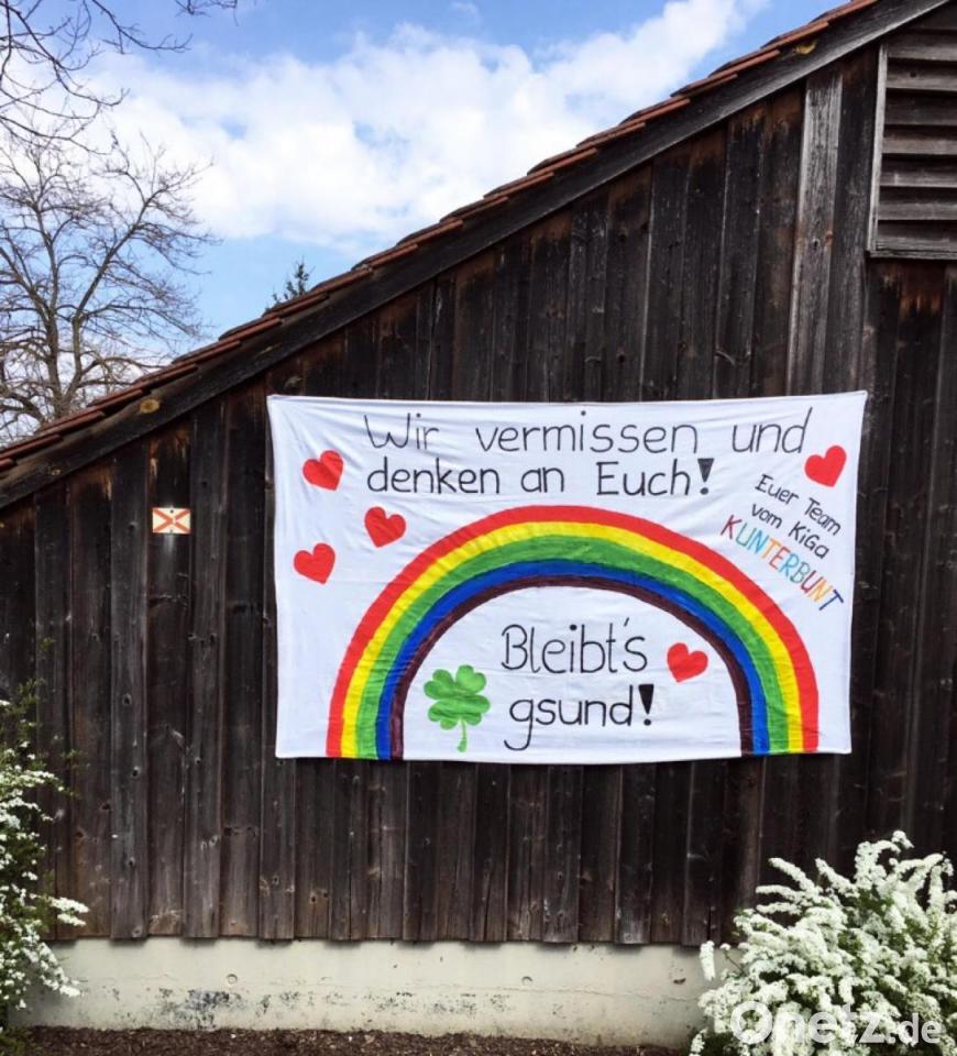 Aufgrund der Corona-Pandemie musste wie alle Kindergärten auch der Kunterbunt-Kindergarten schließen. Die Buben und Mädchen bleiben seither zu Hause. Nach ersten Planungen wäre am Montag der Kindergartenbetrieb wieder gestartet. Doch mit der Verlängerung der Ausgangsbeschränkungen verschiebt sich auch die Öffnung wieder. Wann konkret wieder geöffnet werden darf, steht noch in den Sternen. Jedenfalls haben die Erzieherinnen des Kunterbunt-Kindergartens nach gut vier Wochen "Abstinenz" schon Sehnsucht nach "ihren" Kindern. Am Kindergarten-Stadel an der Frühmeßgasse machten sie es mit einem großen Transparent öffentlich: „Wir vermissen und warten auf euch“, ist zu lesen. Damit möchte das Team des Kindergartens seine Grüße an alle Kinder und Eltern (kontaktlos) senden.