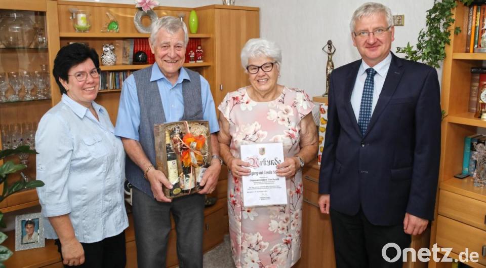 Heute genießt das Ehepaar seinen Ruhestand im Eigenheim auf dem Naabberg. Viel Abwechslung bringen ihnen auch die Besuche ihrer zwei Enkelkinder und des Urenkelkinds. Bürgermeister Johannes Reger überreichte dem Jubelpaar einen Präsentkorb und wünschte ihnen für die Zukunft alles Gute, vor allem Gesundheit.
