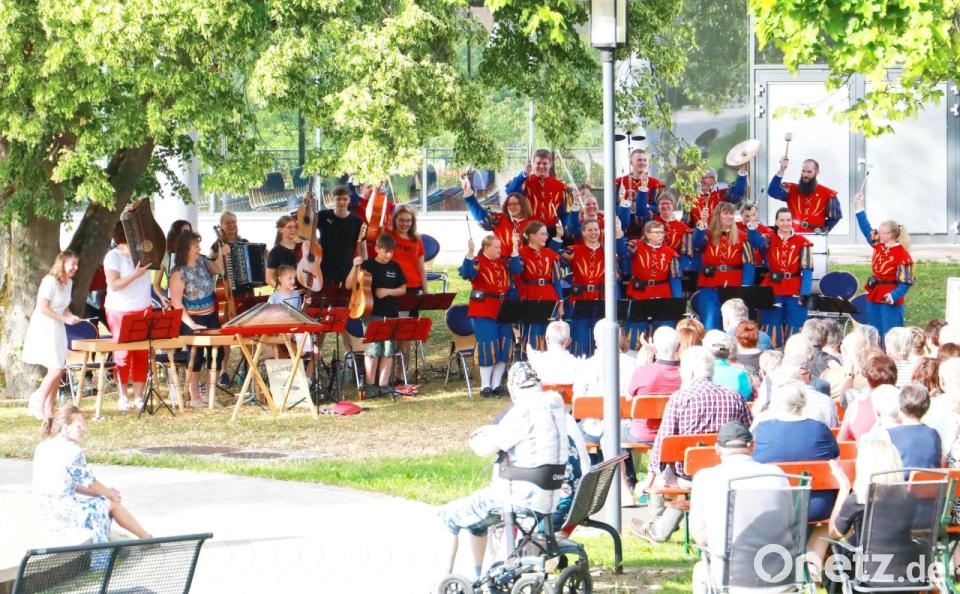 Bei der diesjährigen Sommerserenade im Stadtpark gab es eine besondere Premiere: Der Zitherclub musizierte erstmals gemeinsam mit dem Spielmannszug der Freiwilligen Feuerwehr Erbendorf, der heuer verspätet sein 50-jähriges Bestehen feiert. "Aus diesem Grund haben wir uns zusammen mit dem Zitherclub gemeinsam ein abwechslungsreiches Programm für die diesjährige Sommerserenade auf die Beine gestellt", so Stabführerin Julia Busch. Rund 15 Musiker präsentierten ein vielseitiges Repertoire mit Spielmannsflöten, Lyra, Fanfaren, Trommeln, Becken und Schlagzeug.
