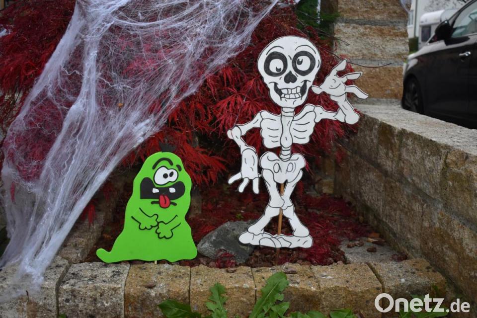 Wer in Erbendorf durch die Karl-Günther-Straße geht, entdeckt aktuell im Vorgarten von Yvonne Schmid so einige gruselige Kuriositäten. Grinsende Geister, Monster und Kürbisse blicken frech aus den Blumenbeeten hinauf, über die Hauswand krabbeln große haarige Spinnen und auf dem Balkon grüßt ein Skelett mit Sonnenbrille die Spaziergänger.