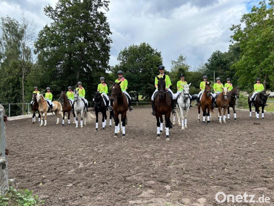 Demnach gestalteten ein paar Reitclubmitglieder einen humorvollen Blick in die Zukunft auf ihre Jahre als Senioren im Sattel. Programmhöhepunkt sei eine Dressurquadrille mit dem Motto „Let’s rock the 90s“ gewesen: Zwölf in Neon-Farben gekleidete Reiterinnen zeigten diese mit ihren geschmückten Pferden. „Die nahezu perfekt gerittenen Figuren zu peppiger Musik sorgten für große Begeisterung beim Publikum“, hieß es. Auch das Kinderreiten war wieder beliebt, und die Gäste genossen das kulinarische Angebot. Untermalt wurde der Festtag von den Heusterz-Musikanten aus Falkenberg.
