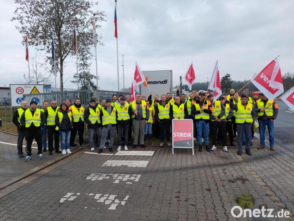 24-stündiger Warnstreik: Beschäftigte von Mondi in Eschenbach gehen auf die Straße