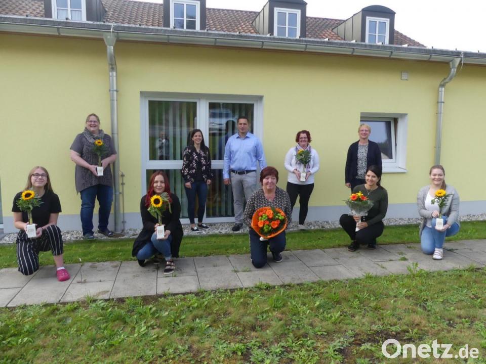 Gradl verband das Jubiläum mit dem Willkommenheißen von sieben neuen Kräften. Die Erzieherinnen Lisa Engelbrecht, Nicole Kroher und Maike Marx, die Kinderpflegerin Ilona Kasubek und die Praktikantin Sina Kleber verstärken das Kindergartenteam im neuen Betreuungsjahr. Zu ihnen gesellen sich die Erzieherinnen Nadine Klempau und Regina Sturm, die aus der Elternzeit in ihre bekannte Umgebung zurückkehren. Der Bürgermeister zeigte sich überzeugt, dass das Kindergartenteam mit dieser Verstärkung gut aufgestellt ist. Als kommunaler Arbeitgeber vereidigte er die Neuen einzeln auf die Verfassung des Freistaates. Gradl hielt es für wichtig, dass alle im Team funktionieren und stets bestrebt sind, Konflikte zu bewältigen. Er betrachtete sich als Ansprechpartner, der stets im Rathaus erreichbar sei.