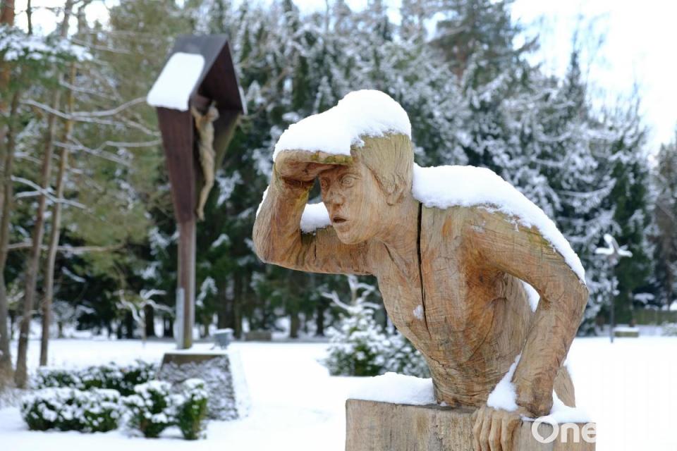 Wo bleiben denn die Gäste? In Zeiten des Corona-Lockdowns für die Gastronomie eine Existenzfrage. Deshalb sind die Interpretationsmöglichkeiten zur Holz-Skulptur im Kunstpark des Obersee-Hotels Glutschaufel vielfältig. Vielleicht hält der "nackte Mann im Schnee" auch nach besseren Zeiten Ausschau.