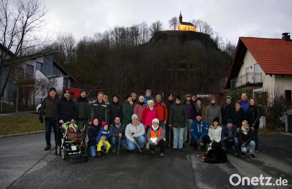 Das Wanderwegenetz um das gewaltige Basaltmassiv ist bekanntermaßen ideal für Familien mit kleinen Kindern und Hunden. So machte sich dann auch eine große Gruppe mit Kind und Kegel auf durch Hohlwege, Wald und Flur und ließ dabei die herrliche Gegend auf sich wirken. Dass dazu auch ein Stopp zur Stärkung für Hungrige und Durstige gehört, ist natürlich klar. Die Zwischenstation war bestens organisiert. Die anheimelnde Atmosphäre, die Dunkelheit und der - im Schein der mitgeführten Lichter - stete Blick auf die Bergkirche, das oben auf dem Gipfel des Parksteins thront, waren für alle beeindruckend.