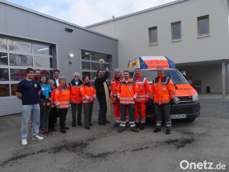 Der Rundgang endete stets in der geschmückten Fahrzeughalle bei Weißwürsten mit Brezen, Grillspezialitäten, Getränken, Kaffee und Kuchen. Vor der Fahrzeughalle wartete ein kleiner Transportwagen auf einen Weiheakt. Das technisch überholte Fahrzeug mit der Erstzulassung 2018 stammt aus Österreich und war von der Bereitschaft Eschenbach „für eigene Aufgaben“ wie Betreuung bei Einsätzen der schnellen Einsatzgruppe angeschafft worden. Es verfügt über je einen Platz für Liegend- und Sitztransport und einen Beifahrer. Bei der Segnung hielt es Pfarrer Johannes Bosco Ernstberger mit Blick auf das BRK-Team für wichtig, „dass es Menschen wie euch gibt“ und wünschte, „dass Gott dabei ist, wenn ihr ausrückt“.