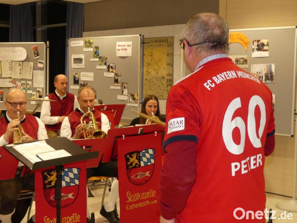 Die Bürgerversammlung fand dann ein geradezu spektakuläres Ende. Martin Danzer, Vorsitzender der Stadtkapelle, bedankte sich beim Bürgermeister für die langjährige Unterstützung und erinnerte an dessen bei einer Weihnachtsfeier geäußerten Wunsch nach der Vereinshymne der „Bayern“. Er streifte dem leidenschaftlichen Fan des FC Bayern ein Trikot mit dem Namen „Peter“ über und ließ ihn "Stern des Südens" dirigieren.