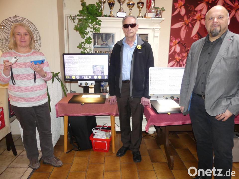 Mit kleinen und großen, praktischen und modernen Hilfsmitteln wurde Thomas Rogowski zum Mitgestalter des Informationsnachmittags, der bei Kaffee, Kuchen oder einem Glas Wein auch gesellige Züge annahm und zu Plaudereien mit Leidensgefährten anregte. Der Firmenrepräsentant stellte neben Brillen sowie elektrischen und optischen Lupen auch größere Hilfsmittel wie ein verstellbares Bildschirmlesegerät und ein Vorlesegerät vor. Letzteres nimmt den eingelegten Text, zum Beispiel eine Zeitung, auf und überträgt ihn in Sprache.