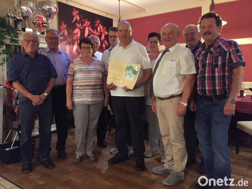 immer bewiesen hat. Unter den Gratulanten war auch Sabine Schultes. Die CSU-Ortsvorsitzende bedankte sich mit einem Geschenk bei Rudolf Danzer, der bereits seit 55 Jahren Mitglied ist, auch dafür, dass er 39 Jahre dem CSU-Ortsverband als Schriftführer wertvolle Dienste geleistet hat. „Lieber Rudi, zum 75. Geburtstag wünsche ich dir alles Gute, Glück, Zufriedenheit, viel Gesundheit und Gottes Segen.“ Dieser Satz stand am Anfang der Laudatio, die „Frohsinn“-Vorsitzender Erwin Dromann für Rudi Danzer hielt. 1970 war er Mitglied geworden und seit 1990 ist er im „Frohsinn“ Schriftführer. Seitdem hat er mehr als 6500 Geburtstagskarten geschrieben und viele auch selbst zugestellt. „Mehr als 425 Seiten Protokolle zu Beginn noch im ehrwürdigen Protokollbuch sind Zeugen für die Hingabe, mit der du dieses Ehrenamt ausübst.“