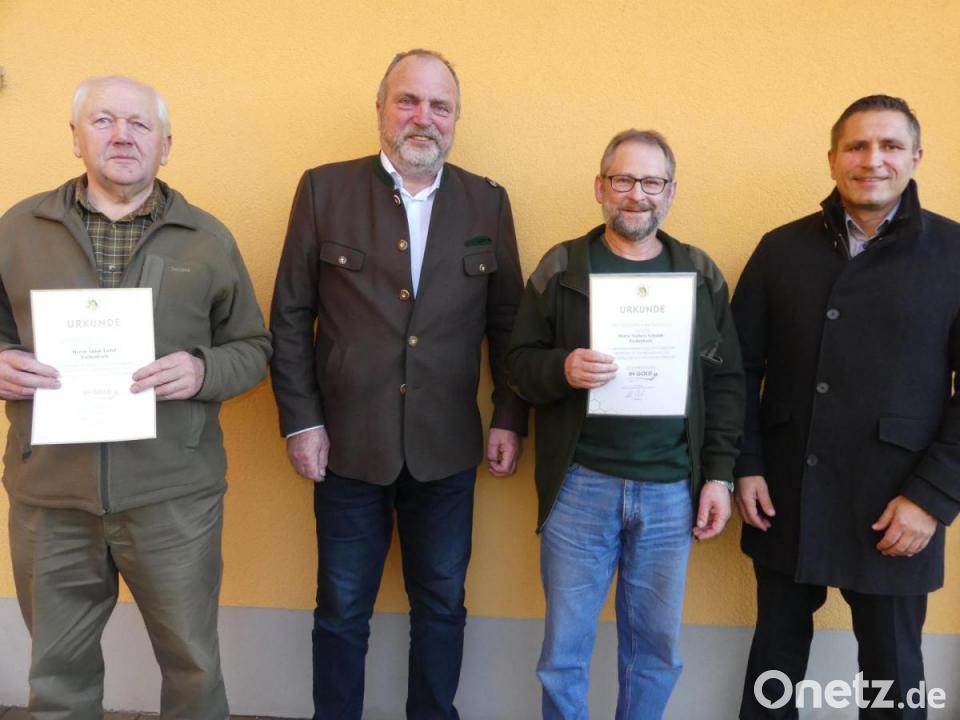 Für die angekündigte Agri-PV-Anlage mit Blühstreifen hielt Bürgermeister Marcus Gradl eine Zusammenarbeit für erstrebenswert. Als „tolle Geste“ wertete er die Aktion mit dem Kindergarten, rief dazu auf, in Kontakt zu bleiben und sah im Honig ein Geschenk der Natur. Anton Fichtl und Norbert Schmidt wurden für 40-jährige Mitgliedschaft mit der Ehrennadel in Gold des Landesverbandes ausgezeichnet. Stellvertretender Kreisvorsitzender Reinhold Ziegler lobte die Eschenbacher Imker und würdigte deren Schulungsprogramm.