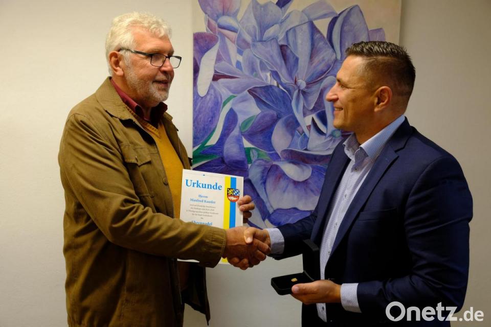 Einen langjährigen Züchter von Deutschen Schäferhunden hat Bürgermeister Marcus Gradl geehrt. Weil Manfred Kausler am Ehrungsabend für verdiente Mitbürger nicht teilnehmen konnte, holte der Rathauschef die Auszeichnung mit der goldenen Ehrennadel der Stadt jetzt nach. Gradl verwies dabei auf die vielen Zuchterfolge und vor allem auf das langjährige ehrenamtliche Wirken des 69-jährigen Maschinenbaumeisters. Gradl verwies auf Kauslers Engagement als Züchter in der Ortsgruppe Eschenbach des Vereins Deutscher Schäferhunde, bei der Ausbildung und Hundeerziehung sowie den Einsatz rund um das Vereinsheim und das Trainingsgelände – dies sei ein Grund für den bundesweit guten Ruf des Vereins. In der Amtszeit Kauslers sei das Eschenbacher Vereinsgelände eine viel beachtete und geschätzte Anlaufstelle für Hundezüchter aus dem gesamten Bundesgebiet geworden. Bei bundesweiten Veranstaltungen wie den sogenannten Universalsieger-Wettbewerben und bei Länder-Kämpfen habe sich auch die Stadt positiv darstellen können, merkte Marcus Gradl bei der Ehrung an.