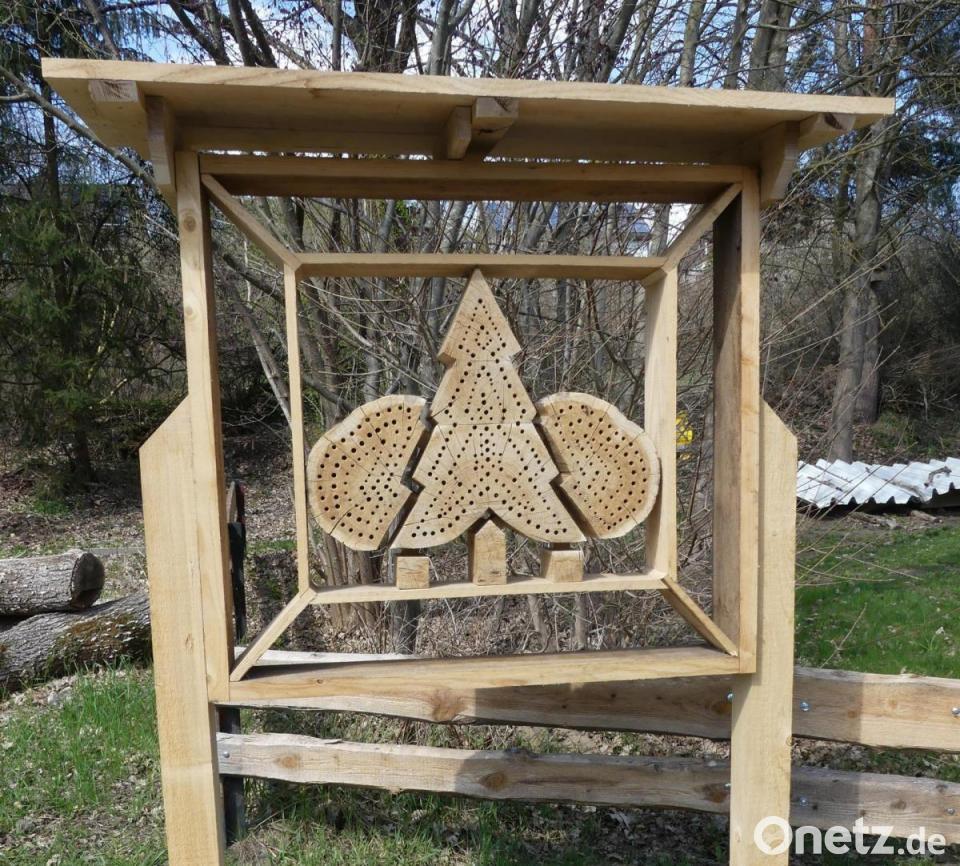 Das bereits aufgestellte Kunstwerk ist eine Gemeinschaftsleistung der Führungsmannschaft der Waldjugend. Es entstammt einer Idee von Seltmann, der ein Vorhaben des Naturparks Nördlicher Oberpfälzer Wald aufgegriffen und gestalterisch angepasst hat. Den zweiten Teil der Arbeiten werden die Gruppenmitglieder übernehmen, sobald die Corona-Beschränkungen gemeinsames Werken zulassen. Die bisherige Bandsägearbeit soll mit viel Schilfrohr, der Brutstätte für Insekten, umgeben werden. In der Endfertigung wird die Abdeckung ein Gründach erhalten, vergleichbar mit dem des Pavillons am Walderlebnispfad. In Arbeit ist außerdem bereits eine Tafel für den unteren Teil des Bauwerks, das künftig ein Blickfang für Passanten in Richtung SCE-Anlagen und Rußweiher sein wird.