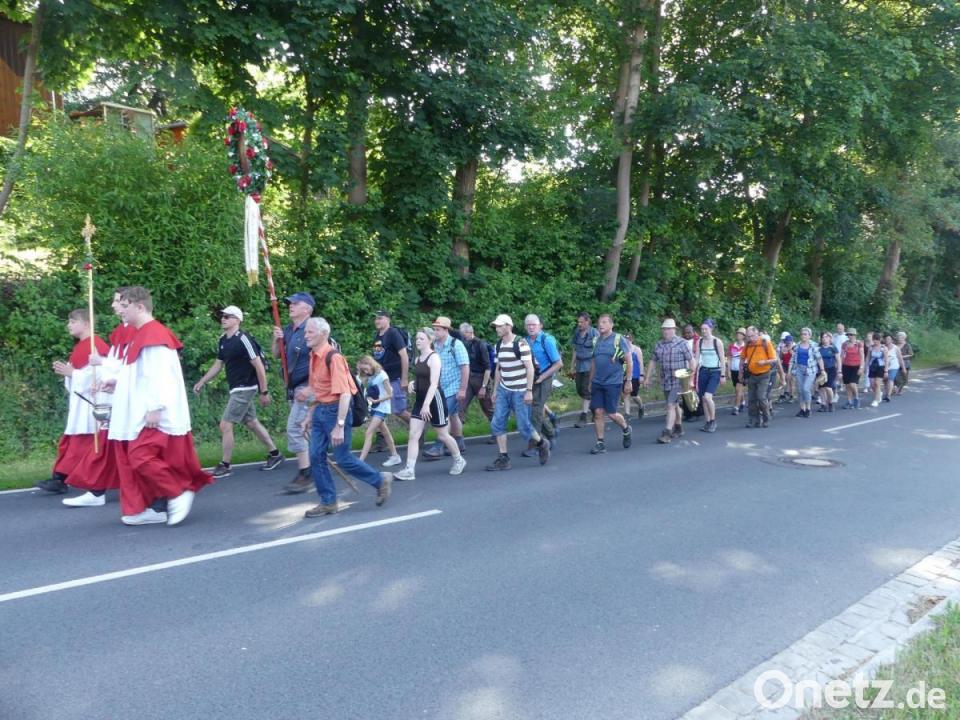 Singend und betend trafen gegen 17.30 Uhr Eschenbacher Wallfahrer am Marterl neben der TÜV-Station in der Kirchenthumbacher Straße ein. Sie hatten seit 6 Uhr, beginnend vom Wallfahrtsort Gößweinstein, 45 Kilometer Fußweg zurückgelegt.