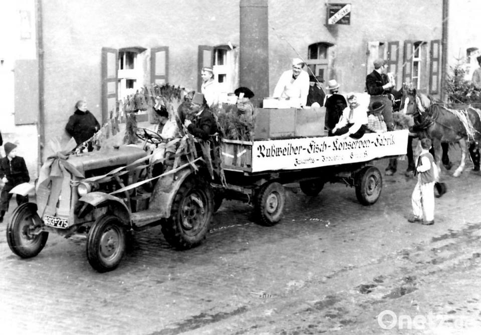 Als der Zweite Weltkrieg vorbei war, hieß ab 1950 die Devise: „Hurra, wir leben noch!“ Kulturwissenschaftler sagen: „So viel Fasching war nie.“ In Eschenbach gab es 1952 wieder einen Faschingsumzug der Gesellschaft „Frohsinn“. Der Faschingswagen zeigte ein junges Mädchen (Rosl Garbe) in einer Konserve, denn junge Mädchen hießen damals „Backfische“.