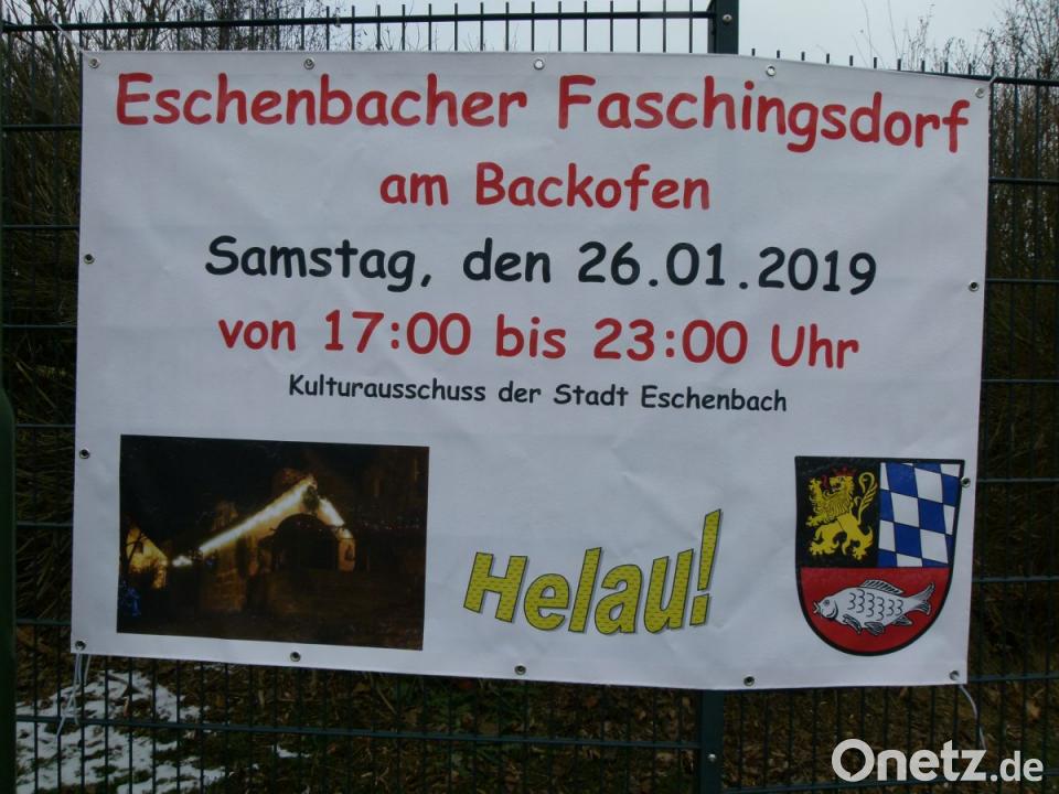 Der Kulturausschuss der Kommune und die Stadtbibliothek laden Groß und Klein, Alt und Jung in die Brunn- und die Färbergasse ein, wo im Dezember 1989 der Heimatverein mit der Tradition der Adventsmärkte begonnen hat. Gestalten werden das Faschingsdorf am Backofen die Backofengemeinschaft, die Stadtbibliothek, der CSU-Ortsverband, die Faschingsgesellschaft, die Junge Union, der Obst- und Gartenbauverein, der Schäferhundverein, SCE-Förderverein und -Herrenmannschaft sowie der SPD-Ortsverein. Ihre Angebote sind unter anderem Barbetrieb, Bratwürste, Chicken Nuggets, Hamburger, Kaffee, Küchel, Steaks, Zwiebelkuchen und eine reiche Getränkeauswahl. Die Bibliothek hat die Losung ausgegeben: "Die Eltern feiern draußen, die Kinder drinnen." Die Kinderbetreuung von 17 bis 20 Uhr beinhaltet Minidisco, Vorlesen, Basteln, Malen und Tattoos.