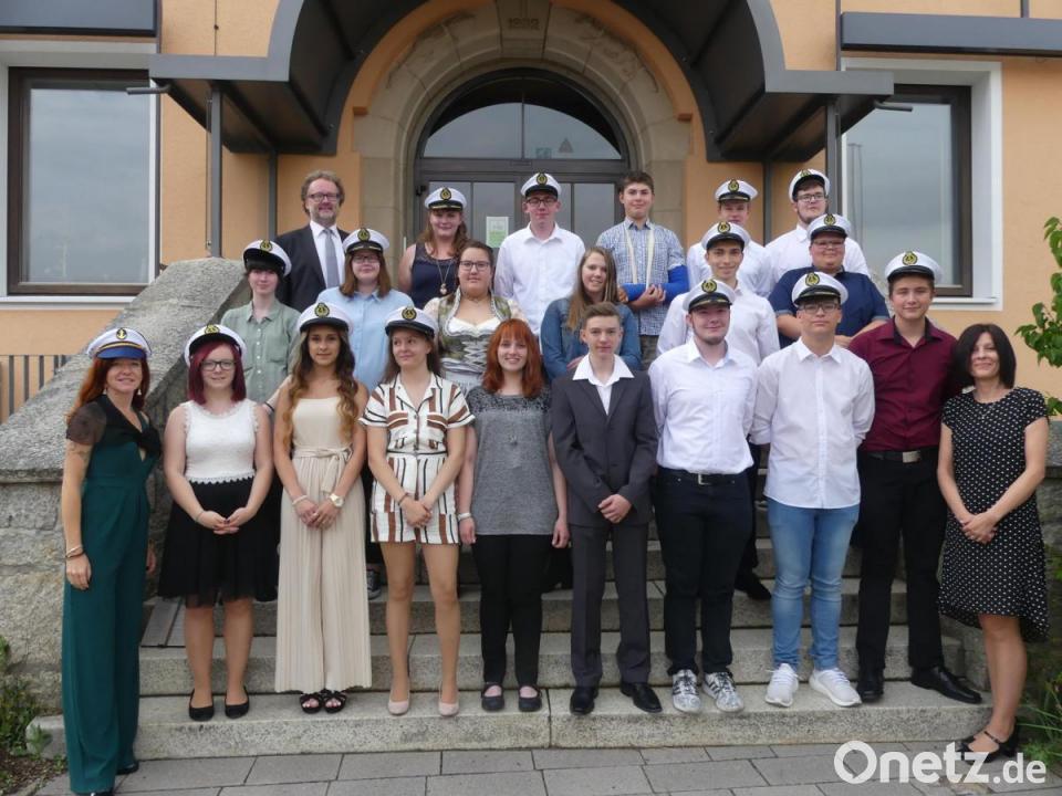 Als Reiseberater wandte sich Peter Lehr an die Absolventen. „Bildung ist der beste Reiseproviant für den Weg in und durch das Berufslebens“, versicherte der Bürgermeister und räumte auch im Namen seiner Amtskollegen Wolfgang Haberberger und Gerhard Löckler ein: „Sie allein werden den Weg Ihres Lebens und damit Ihres Berufslebens bestimmen.“ Auch Elternbeiratsvorsitzende Maria Kraus gab den Jugendlichen Ratschläge mit auf den Weg. Mit einer zum Teil launigen Ansprache von der „Schiffsbrücke“ aus wandte sich dann Anja Bräu mit Kapitänsmütze an die Mannschaft des „MS Bräu“. Sie ließ auf große Herausforderungen mit vielen Stürmen während der M9-Reise schließen, während der es bei dem einen oder anderen auch eine Flaute gab. Einfließen ließ sie in ihren Lagebericht: „Meine Crew maulte auch manchmal kräftig, und ich hatte oft Mühe euch wieder auf Kurs zu bringen. Und ich hatte gehofft, dass unser Schiff nicht sinkt. Doch meine ganze Mannschaft hatte das Land, das Ziel, schon vor Augen, und jeder hat mit angepackt, damit das Schiff in den sicheren Hafen gelangt.“