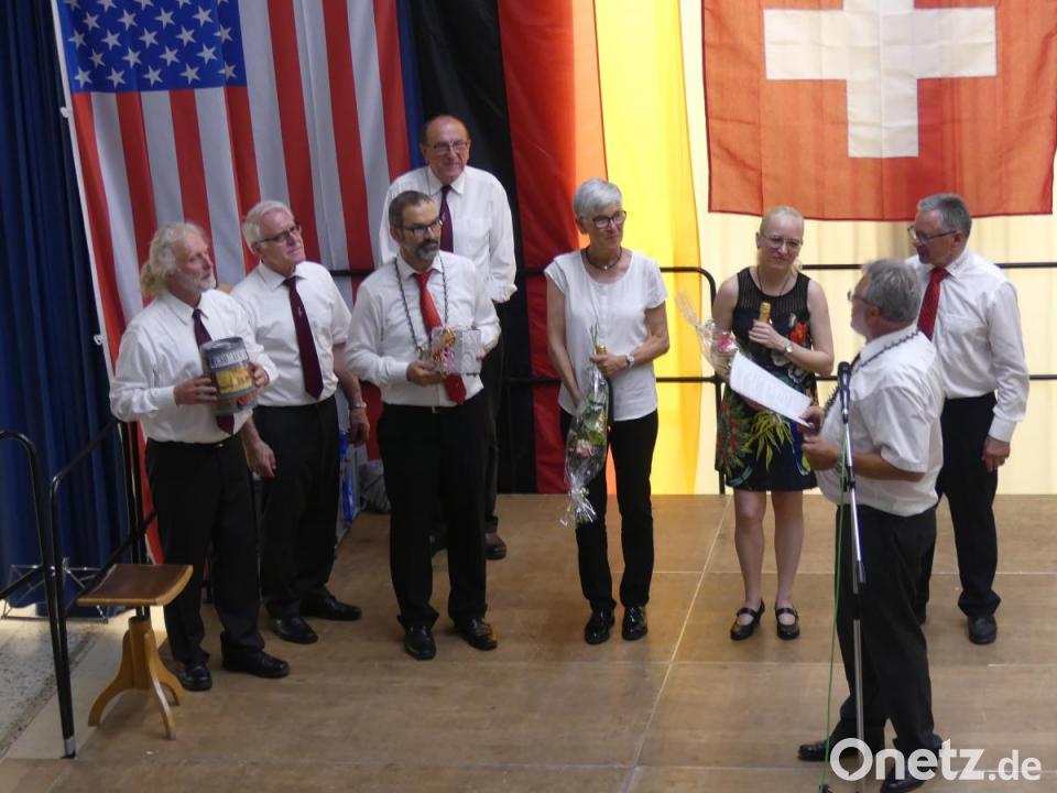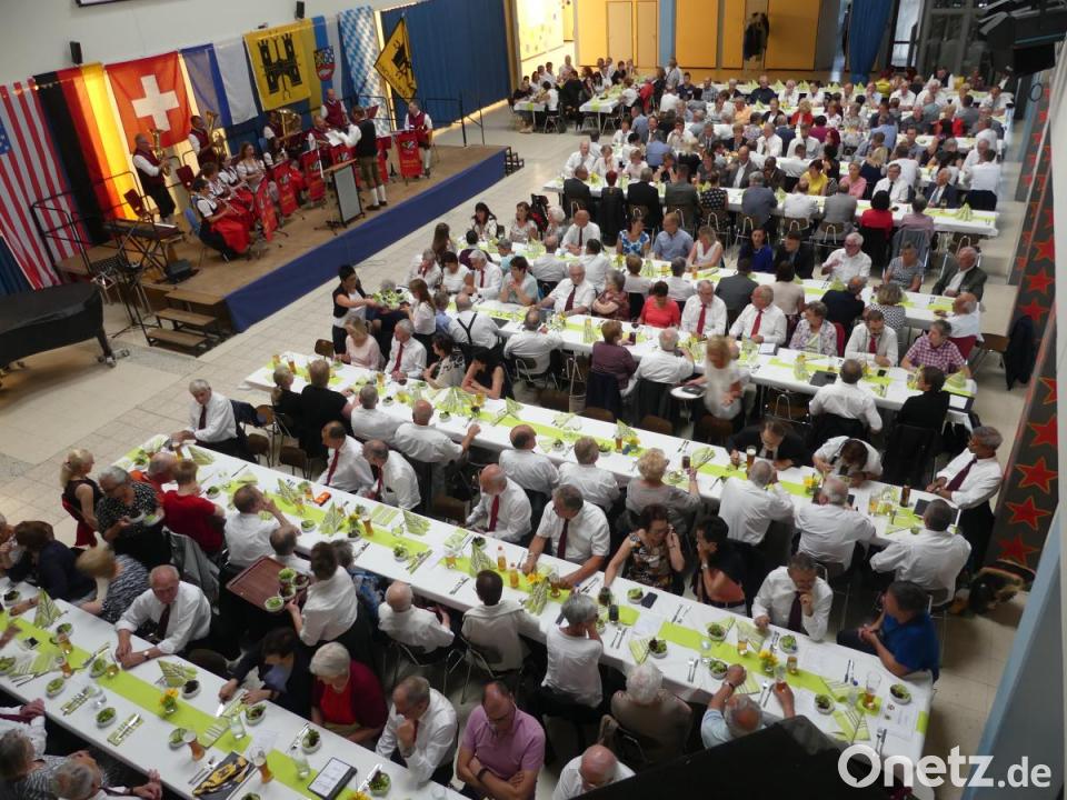 Dem Schweizer Männerchor gratulierte Lorenz zu dessen 100. Gründungsjubiläum. Vor und nach dem Festessen gab die Stadtkapelle ein schwungvolles Konzert, bei dem nach dem „Böhmischen Traum“ das „Bure-Büebli“ des Vorabends fröhliche Auferstehung feierte. Eine vielstimmige Singgemeinschaft übte sich bewegungsreich beim „Vire-hinti-obe-nach rechts-nach links“.