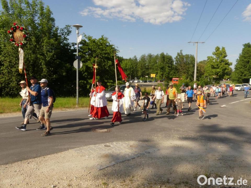 Die Gößweinsteinwallfahrer hielten ihren "Fahrplan" ein. Am Sonntag erreichten sie um 17.30 Uhr auf dem Radweg von Kirchenthumbach kommend die Rußweiherkreuzung, querten von der Feuerwehr abgesichert die B 470 und wurden von Pfarrer Johannes Bosco Ernstberger und Ministranten empfangen.