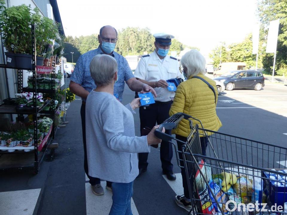 Mit Informationsblättern, Parkscheiben und Eiskratzern wandten sich Horst Rozinski, Geschäftsführer der Gebietsverkehrswacht, und Verkehrserzieher der Polizeiinspektion Paul Zawal vor dem Edeka-Markt an Passanten und Kunden. Neben dem Dank für die Handreichungen entwickelten sich Gespräche zum Telefonieren am Steuer. Sichtlich überrascht zeigten sich die meisten Gesprächspartner als sie erfuhren, dass eine Sekunde Ablenkung genügt, um bei 50 Kilometer pro Stunde (km/h)14 Meter im Blindflug unterwegs zu sein, und bei einer Geschwindigkeit von 80 km/h die „blinde Strecke“ bereits 22 Meter beträgt.