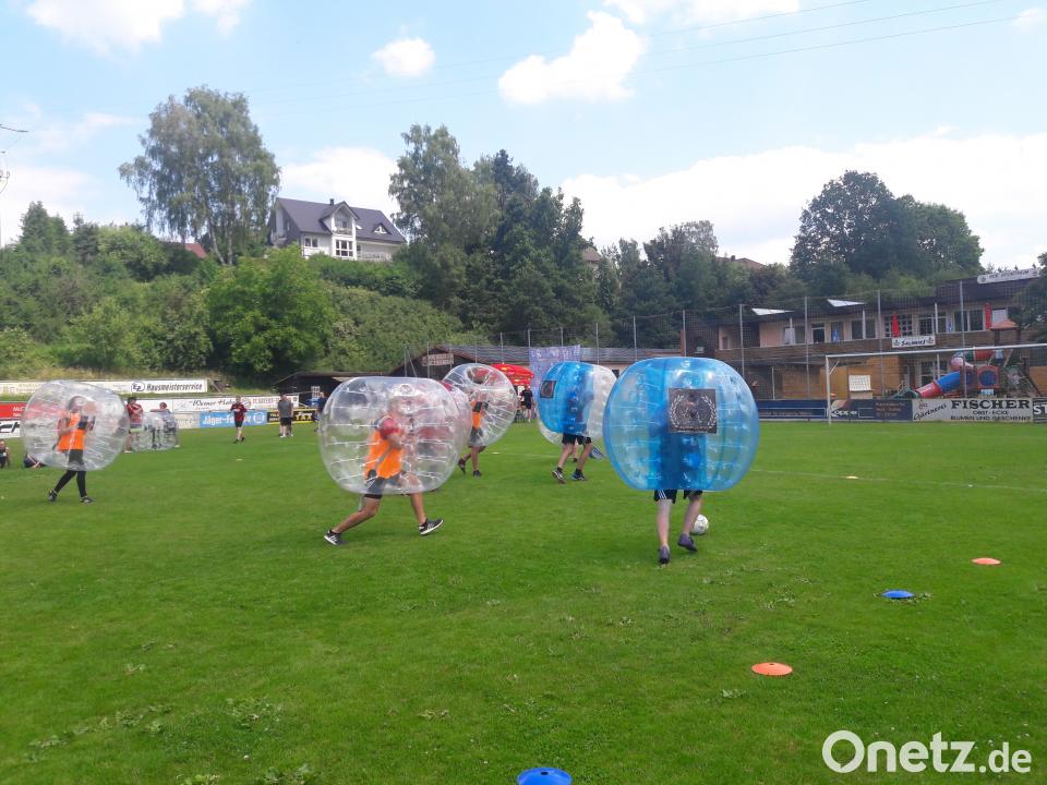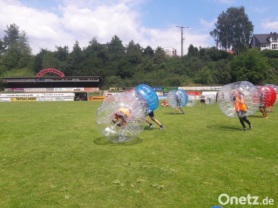 (msh) Auf dem Sportplatz des SCE gab es am Samstag einige Zusammenstöße. Aber die waren gewollt, denn sechs Mannschaften maßen sich beim Bubble-Ball-Turnier des Sportclubs. Organisiert hatten die Veranstaltung die beiden Herrenmannschaften des Vereins. In 15 spannenden Spielen trafen die Teams aufeinander. Mit dabei waren unter anderem der SPD-Ortsverein, eine gemischte Herren- und Jugendmannschaft des SCE sowie ein reines Damen-Team. Am Ende jubelte das „Team Stopfer“, das sich mit 13:0 Toren und der vollen Punkteausbeute den Gesamtsieg holte. Der Lohn für die harte Arbeit im Gummiball an diesem heißen Tag ist ein Grillfest.