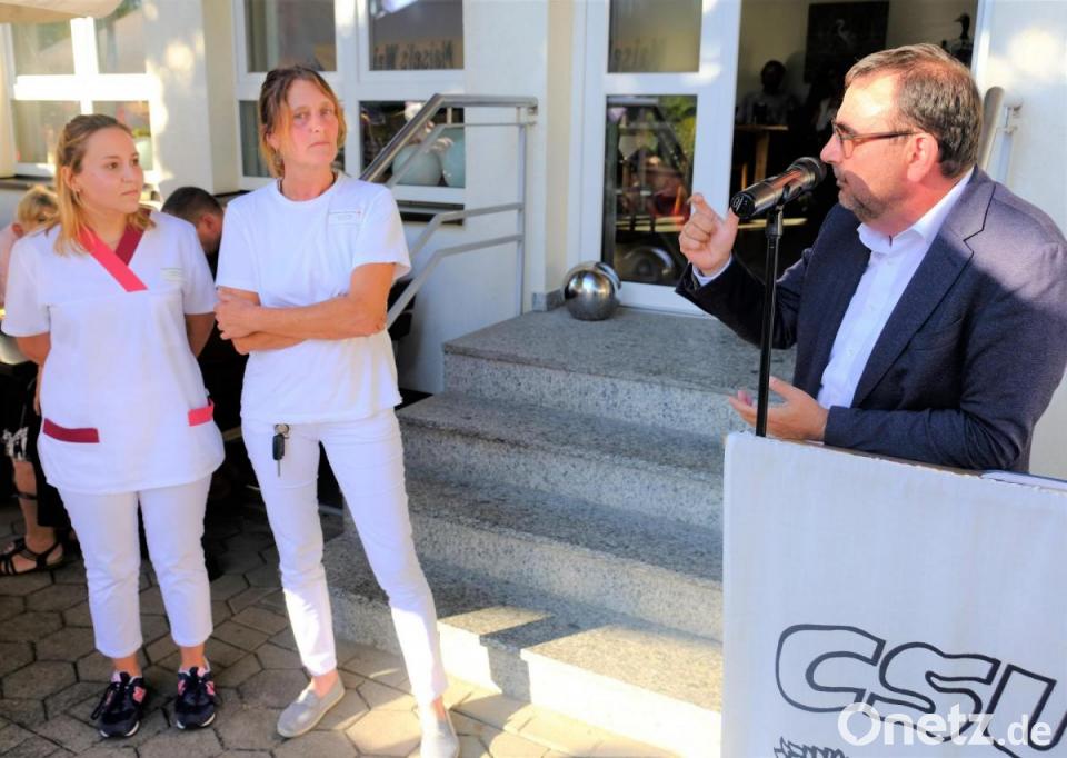 Die Rufe wollten auch zu Beginn der Ministerrede nicht enden. Aus dem mit circa 100 Besuchern überfüllten Biergarten des Hotels Rußweiher kam die prompte Reaktion: „Wir sind gekommen, um dem Minister zuzuhören und nicht euer Gebrüll." Eine Aufforderung, die einige Störer wenig beeindruckte. Holetschek konnte die Geräuschkulisse allerdings nur wenig beeindrucken. Er führte Bayerns neue Corona-Kommunikationskampagne für Herbst und Winter aus. Eindringlich plädierte Holetschek für die Auffrischimpfungen und für die Aufrechterhaltung der Test-Infrastruktur. Mit Blick auf die Risikogruppen kündigte der Minister an: „Auf Kosten des Freistaates ermöglichen wir in den Alten- und Pflegeheimen ab Herbst freiwillige PCR-Testungen für Bewohner und Beschäftigte.“