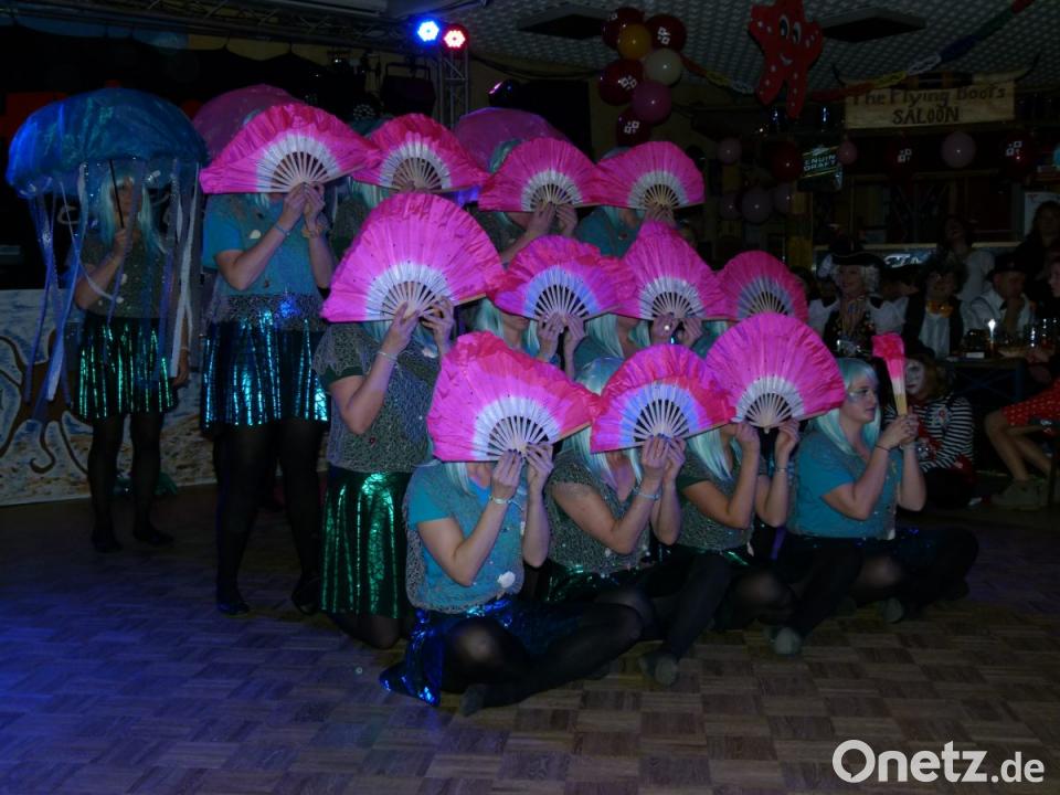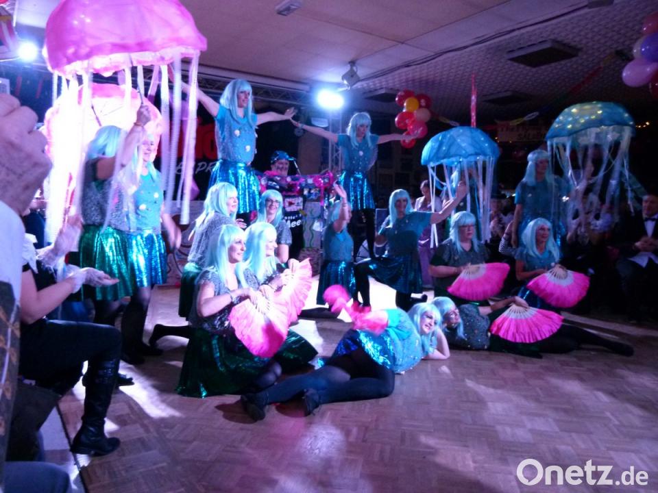 Einer Rakete gleich startete die Prinzengarde zu einem Pop-Medley ihren Paradetanz, wiederholt unterbrochen von tosendem Beifall der Besucher. Gelbgrünen "Marsmädchen" gleichend entstieg die Jugendgarde der Kuppel eines Raumschiffes und schwebte bei ihrem Showtanz, begleitet von "Sterne am Himmel", durch den Weltraum. Einem ernsten Thema wandten sich die "Ladykracher" zu: Sie prangerten, begleitet von Lichteffekten, die Verschmutzung der Meere an. "Ja, sieh dich nur um, hier siehst du die buntesten Fische und die schönsten Korallen, einfach atemberaubend. Aber sieh mal genauer hin: überall Plastik, überall Müll. Ihr Menschen bedroht und zerstört unsere wunderbare Unterwasserwelt. Macht die Augen auf, stoppt die Verschmutzung jetzt", forderte eine Nixe. Unvermittelt entstiegen quirlige Tiefseebewohner mit schillernder Haarpracht und blaugrün gewandet einer Muschel. Zugleich tauchten Quallen auf.