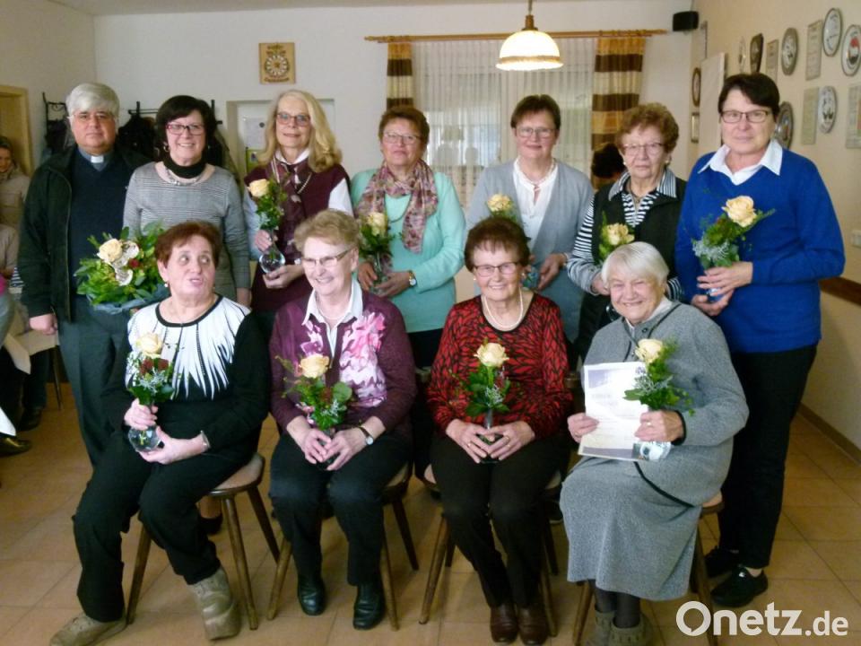 Sie kündigte die Ehrung langjähriger Mitglieder an und sah in ihnen tragende und prägende Angehörige der Gemeinschaft. Stopfer äußerte die Hoffnung: "Vielleicht sind sie Ansporn zur Werbung neuer Mitglieder." Urkunden und Blumenpräsente erhielten für 45-jährige Treue Elisabeth und Hildegard Danzer, Gerda Rupprecht und Rosa Traßl sowie für 40 Jahre Zugehörigkeit Maria Ostermeier. Die gleiche Ehrung erfuhren für 35 Jahre Mitgliedschaft Erna Dilling, Maria Götzl, Anni Hammer und Monika Stopfer sowie für 30 Jahre Rita Kraus.