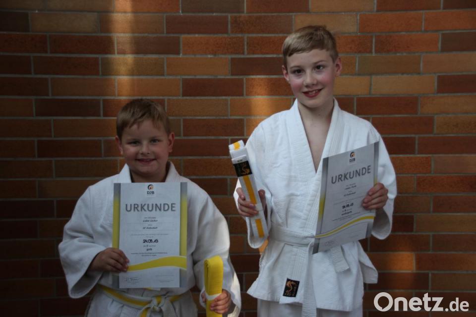 Für die acht jüngsten Kinder war es die erste Prüfung dieser Art, bei der es darum geht, den Partner mithilfe von Wurftechniken auf den Rücken zu werfen und dort für eine bestimmte Zeit festzuhalten, aber auch sich aus einem solchen Griff wieder zu befreien. Moritz Fenzl, Eli Langolf, Johannes Lobenhofer, Marc Milfort, Julian Ruchs, Adrian und Liane Schunk und Simon Tafelmeyer bestanden die Prüfung und dürfen nun mit dem weiß-gelben Gürtel tragen. Damit haben sie auch die Berechtigung erworben an Turnieren im Regierungsbezirk teilzunehmen.